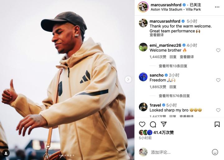 赛后,拉什福德兴高采烈地在社交媒体上晒出了自己在比赛中的照片,与球迷分享了他在赛场上的喜悦。他还配文感谢球迷的热情支持,表示球队表现出色,共同努力换来了这场胜利。这样的首秀,无疑为拉什福德在维拉的职业生涯揭开了激动人心的序幕。